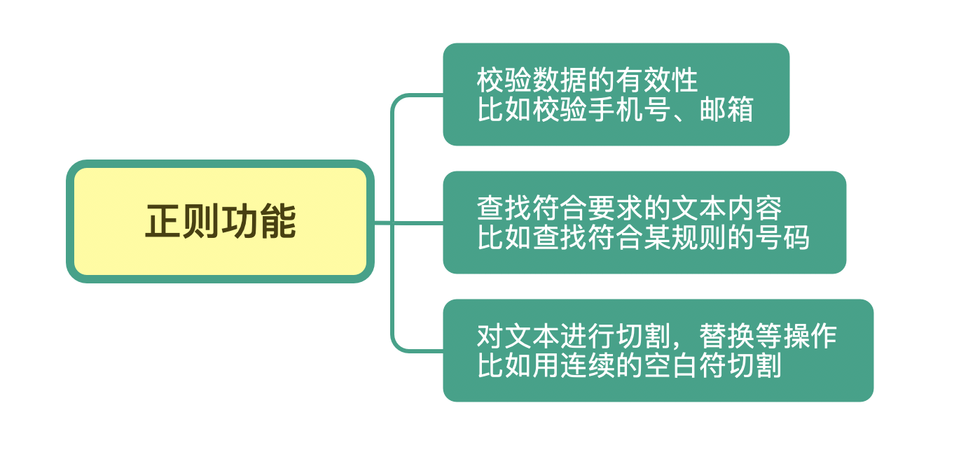 简单来说,正则是一个非常强大的文本处理工具,它的应用极其广泛。我们可以利用它来校验数据的有效性,比如用户输入的手机号是不是符合规则;也可以从文本中提取想要的内容,比如从网页中抽取数据;还可以用来做文本内容替换,从而得到我们想要的内容。