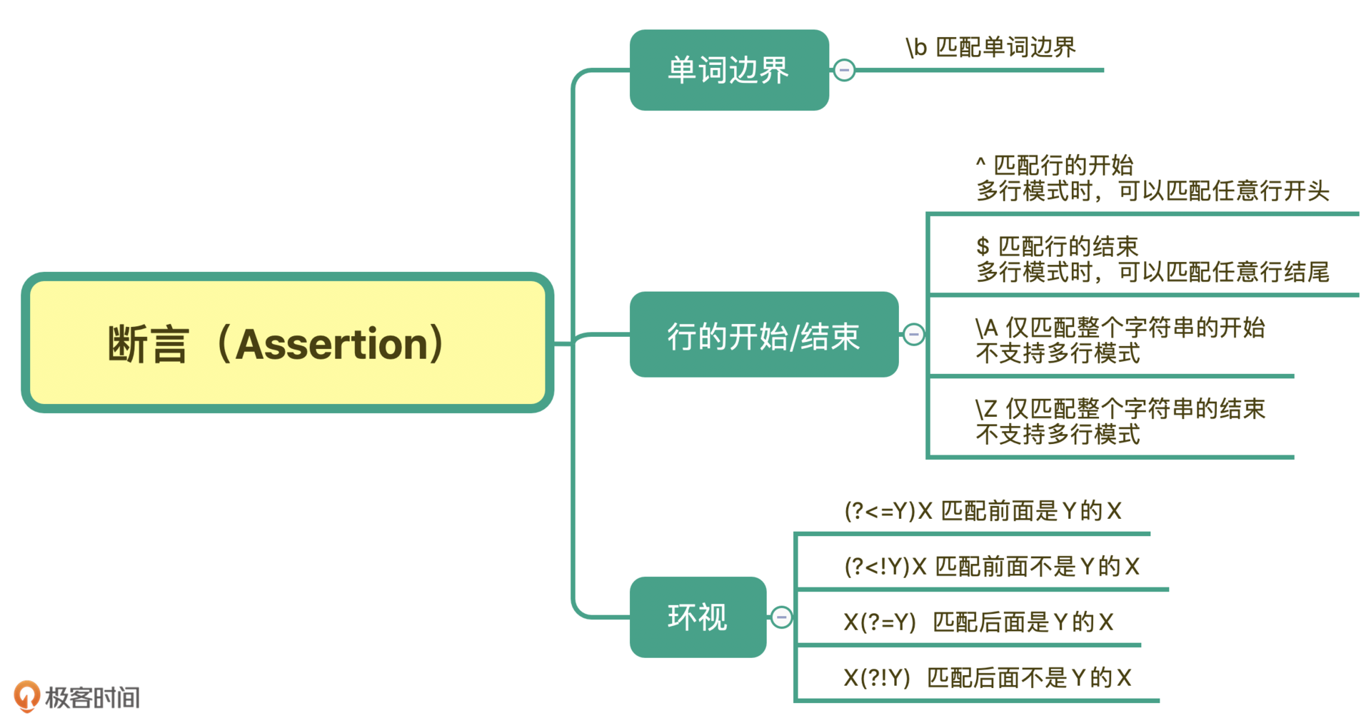 也就是说,在有些情况下,我们对要匹配的文本的位置也有一定的要求。为了解决这个问题,正则中提供了一些结构,只用于匹配位置,而不是文本内容本身,这种结构就是断言。常见的断言有三种:单词边界、行的开始或结束以及环视。
