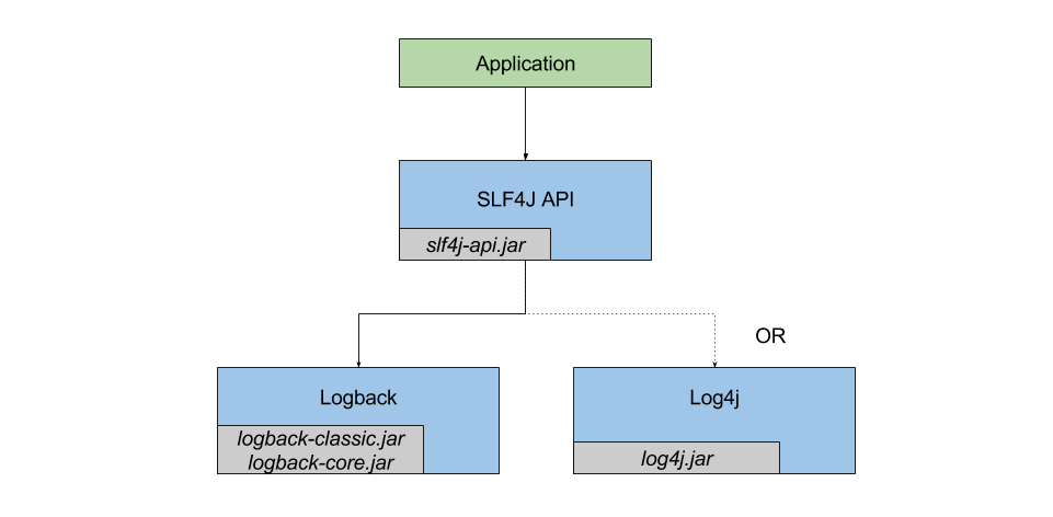 日志模块作为一个通用的功能,在系统里通常会使用第三方的日志框架。Java的日志框架有很多,比如:JUL(Java Util Logging)、Log4j、Logback、Log4j2、Tinylog等。除此之外,还有JCL(Apache Commons Logging)和SLF4J这样的“门面日志”。下面是SLF4J与日志框架Logback、Log4j的关系图: