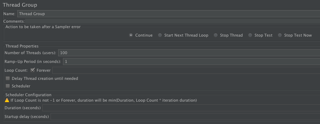 2.启动JMeter开始压测,这里我们将压测的线程数设置为100:
