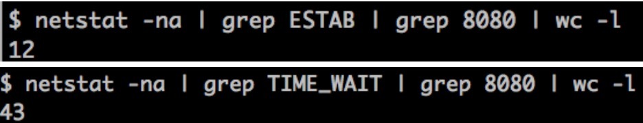 你还可以分别统计处在“已连接”状态和“TIME_WAIT”状态的连接数: