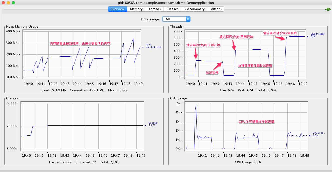 下面我们从线程数、内存和CPU这三个指标来分析Tomcat的性能问题。