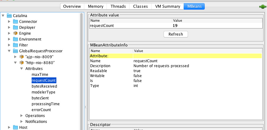 Tomcat定义了一系列MBean来对外暴露系统状态,接下来我们来看看如何通过JConsole来监控这些指标。