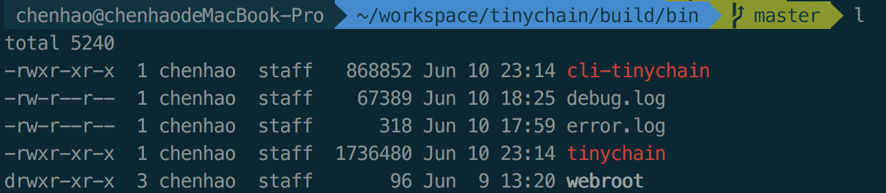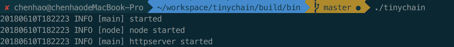 ✘ chenhao@chenhaodeMacBook-Pro ~/workspace/tinychain/build/bin master ./tinychain