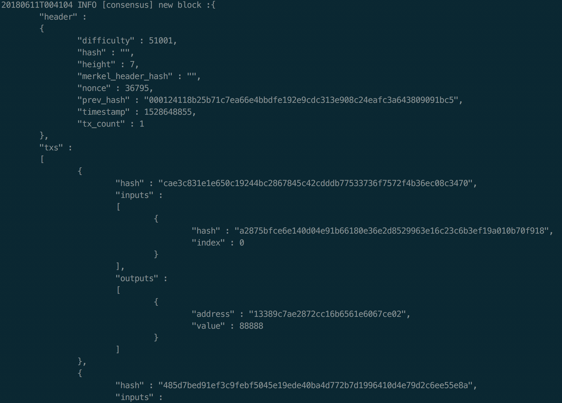 20180610T232357 INFO [consensus] new block :{
