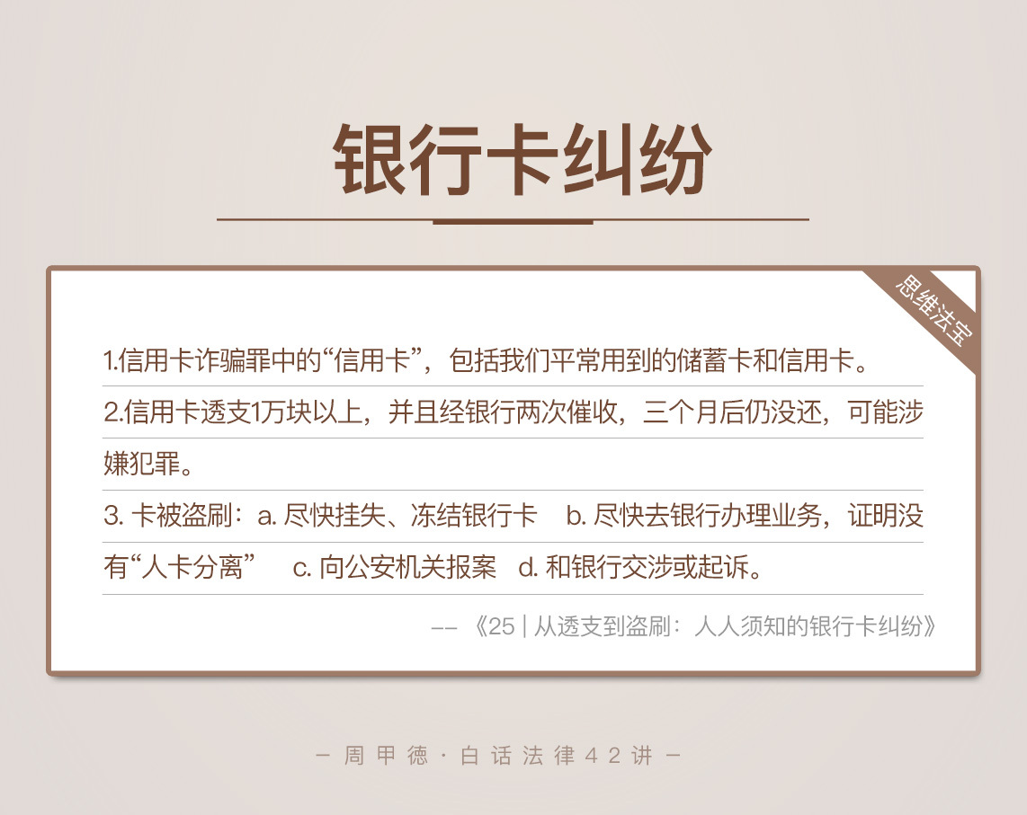 我估计答案是否定的,毕竟每年的银行卡纠纷案子,可真不少见。使用规则主要涉及经济领域,我就不多说了,我今天想讲的,正是银行卡的风险和法律问题,毕竟保管不善或者使用不当,都可能让你的银行卡陷入危机。