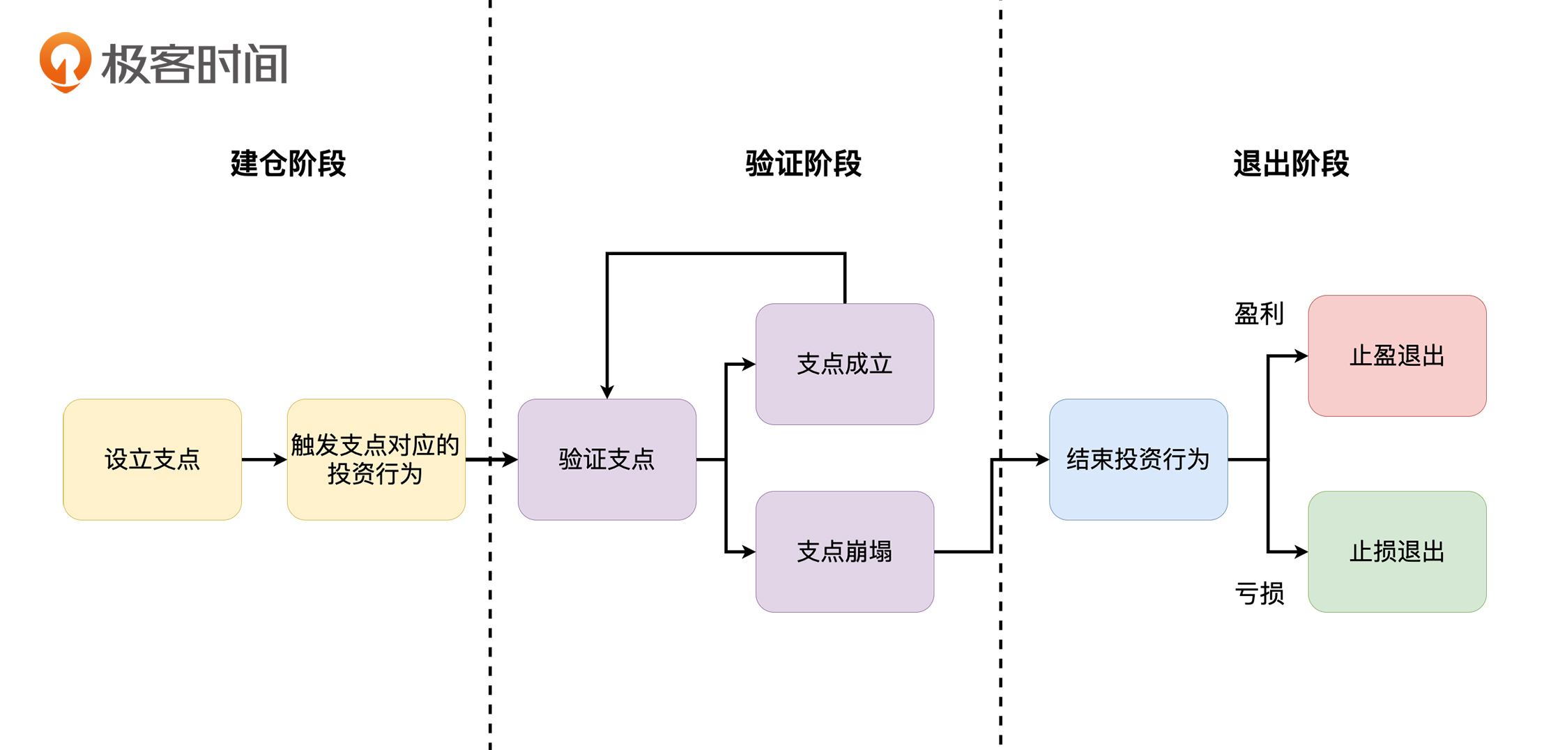 支点投资法主要分为三个阶段,分别是“建仓阶段”“验证阶段”和“退出阶段”。