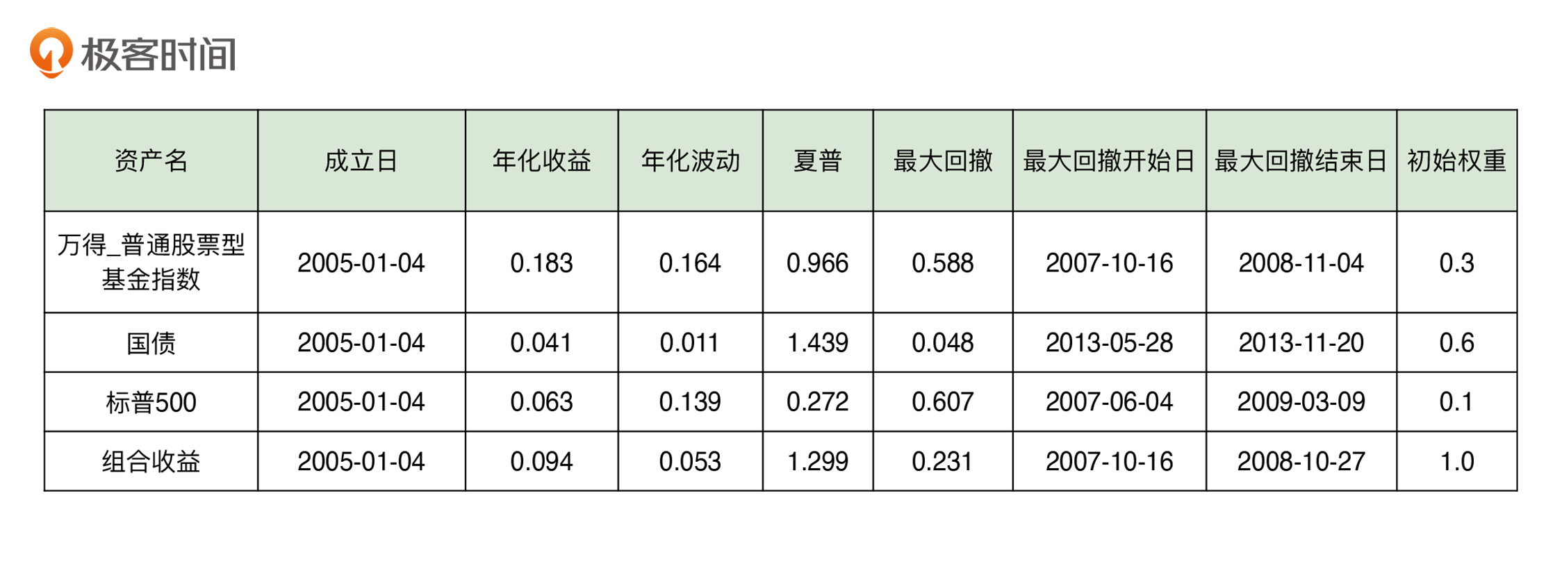 这里我们再来回顾一下耶鲁组合的配置方案。耶鲁组合的基本构建思路是:尽量多地引入有坚实盈利逻辑的资产类别。根据这一基本原则,我挑选了兼顾收益率和最大回撤指标的三个资产项,组成了我们自己的耶鲁组合。具体配置方案是30%中国主动股基,10%美国股票资产和 60%的中国债券资产。它的整体收益率如图1所示。这一组合能够达到9.4%的年化收益以及23.1%的最大回撤,综合表现是相当优秀的。