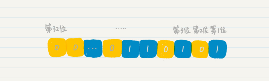 当符号位为0时,表示该数值为正数;当符号位为1时,表示该数值为负数。我们以32位Java为例,数字53的二进制为110101,从右往左数的第32位是0,表示该数是正数,只是通常我们都将其省略。