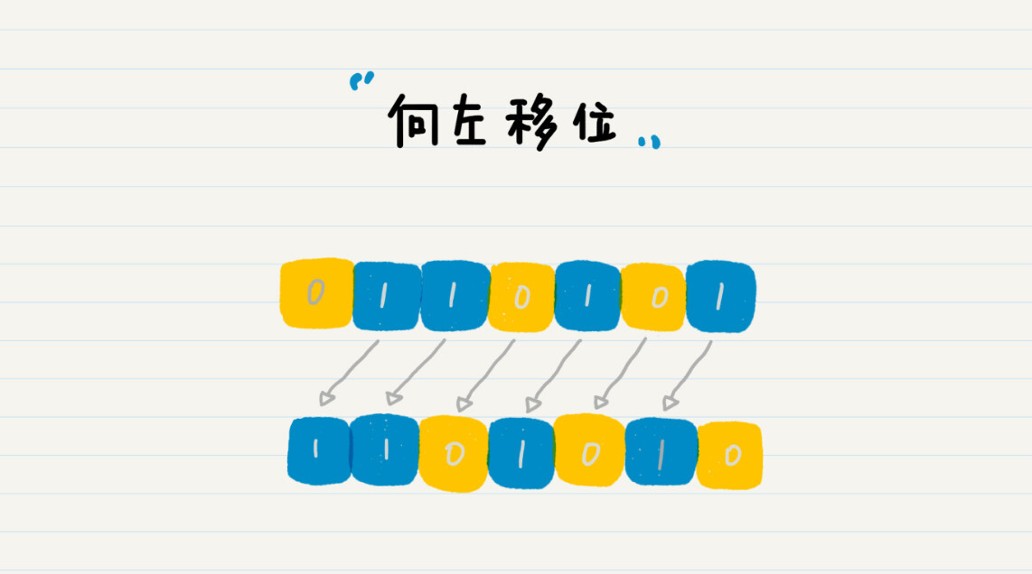 二进制110101向左移一位,就是在末尾添加一位0,因此110101就变成了1101010。请注意,这里讨论的是数字没有溢出的情况。