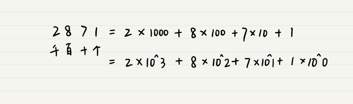 其中^表示幂或次方运算。十进制的数位(千位、百位、十位等)全部都是10^n的形式。需要特别注意的是,任何非0数字的0次方均为1。在这个新的表示式里,10被称为十进制计数法的基数,也是十进制中“十”的由来。这个我想你应该好理解,因为这和我们日常生活的习惯是统一的。