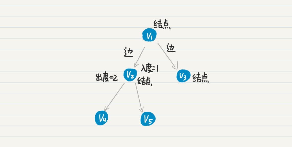在有向图中,以结点\(v\)为出发点的边的数量,我们叫作\(v\)的出度。而以\(v为\)终点的边之数量,称为\(v\)的入度。在上图中,结点\(v\_{2}\)的入度是1,出度是2。