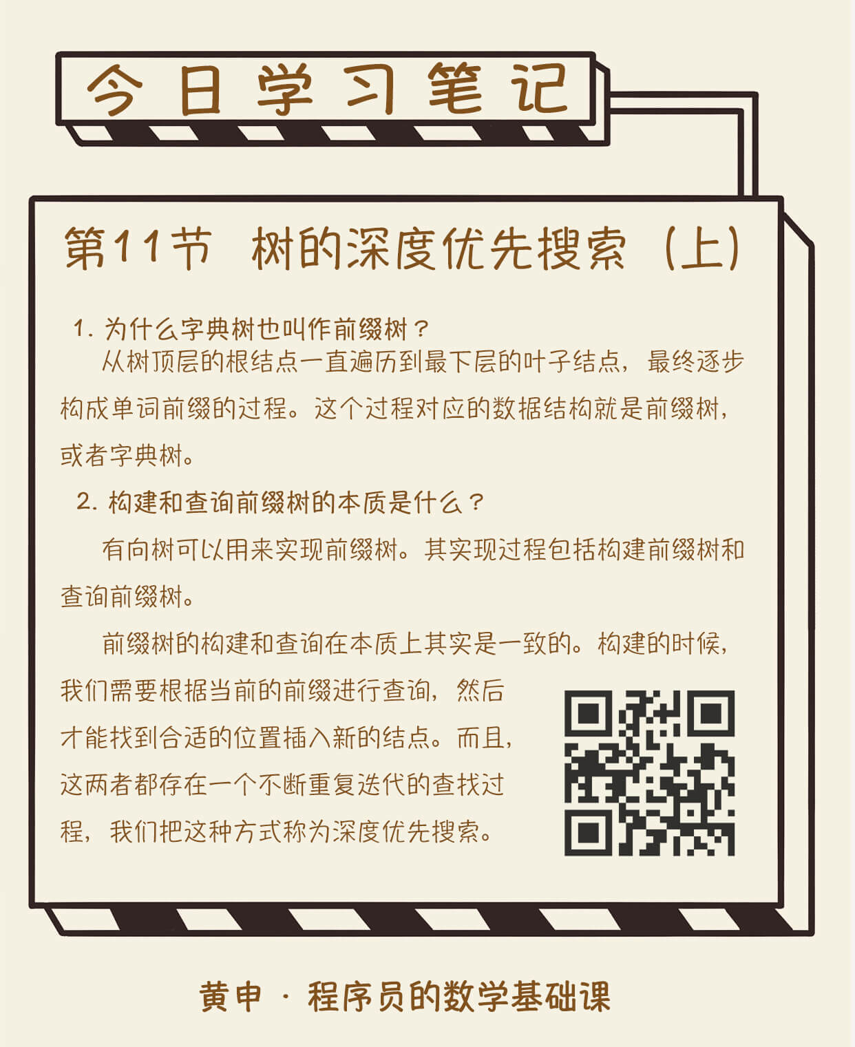前缀树的构建和查询这两者在本质上其实是一致的。构建的时候,我们需要根据当前的前缀进行查询,然后才能找到合适的位置插入新的结点。而且,这两者都存在一个不断重复迭代的查找过程,我们把这种方式称为深度优先搜索(Depth First Search)。