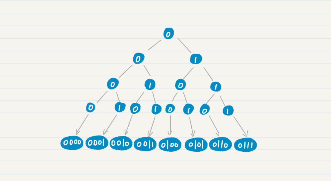 满二叉树是一棵高度为n(高度从1开始计),且有2^n-1个结点的二叉树。在高度为k(0≤n)的这一层上,结点的数量为2^(k-1)。如果把树的根标为0,每个结点的左子结点标为0,每个结点的右子结点标为1,那么把根到叶子结点的所有0或1连起来,就正好对应一个二进制数。