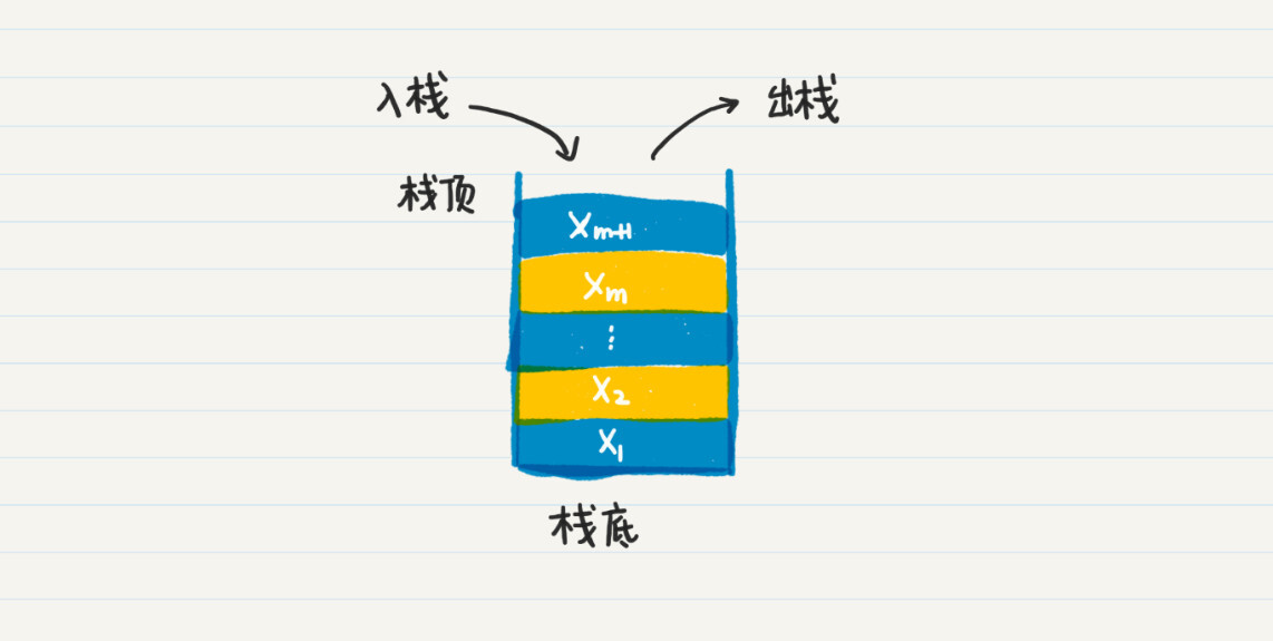 栈的特点是先进后出(First In Last Out),也就是,最先进入栈的元素最后才会得到处理。我画了一张元素入栈和出栈的过程图,你可以看看。