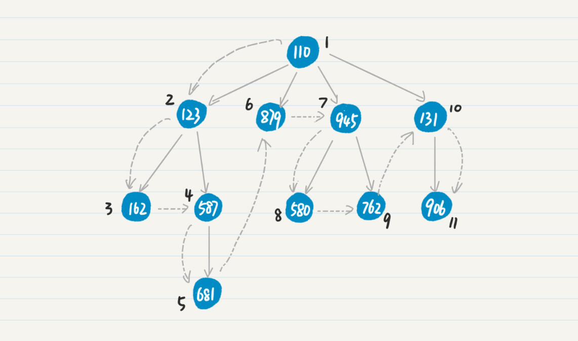 我们可以把函数的嵌套调用,看作访问下一个连通的结点;把函数的返回,看作没有更多新的结点需要访问,回溯到上一个结点。在之前的案例中,我已经讲过很多次递归编程的例子,这里我就不列举代码细节了。如果忘记的话,你可以回去前面章节复习一下。