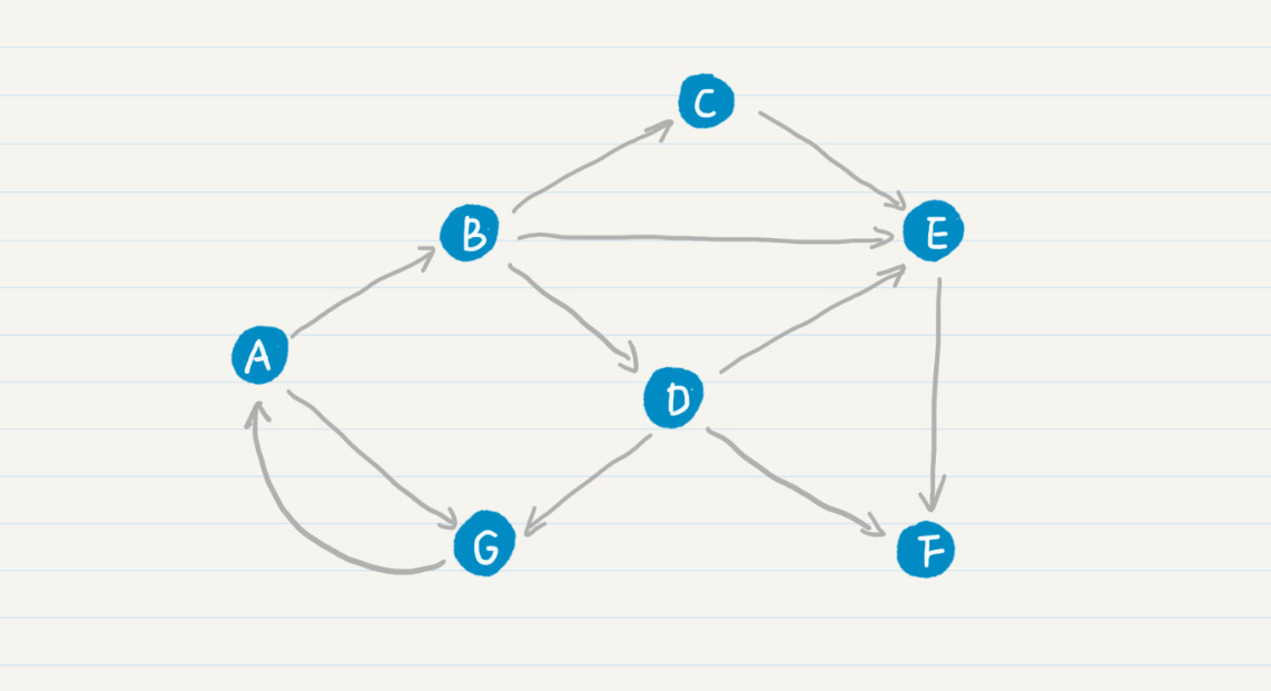 那么,PageRank的公式和马尔科夫链有什么关系呢?我先给你看一张Web的拓扑图。