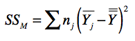 在这个公式中, \(Y\_{ij}\)如前所说,表示了第\(i\)天第\(j\)种算法所导致的转化率。而\(\\overline{\\overline Y}\)表示了10天里,2种算法全部20个数据的平均值。SSM表示数据分布所引起的方差,我们称它为模型平方和(Sum Of Squares for Model),它的计算公式如下: