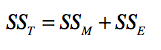 之前我们提到,差异是不是显著性,关键要看这个差异是采样的偶然性引起的,还是分布本身引起的。方差分析的核心思想也是围绕这个展开的,因此它计算了三个数值:SST、SSM和SSE。SST表示所有采样数据的因变量方差(Total Sum of Squares),我把它的计算公式列在这里。
