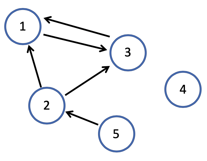 假设\(x\_{i,j}\)是矩阵中第\(i\)行、第\(j\)列的元素,那么我们就可以使用\(x\_{i,j}\)表示从结点\(i\)到结点\(j\)的连接,放到PageRank的应用场景,\(x\_{i,j}\)就表示网页\(p\_{i}\)到网页\(p\_{j}\)的链接。最原始的邻接矩阵所包含的元素是0或1,0表示没有链接,而1表示有链接。