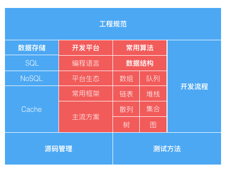 在程序的技能地图中,需要先开启和点亮哪些部分呢?回顾我过去的经历并结合现实的需要,可以从如下两个不同程度的维度来说明: