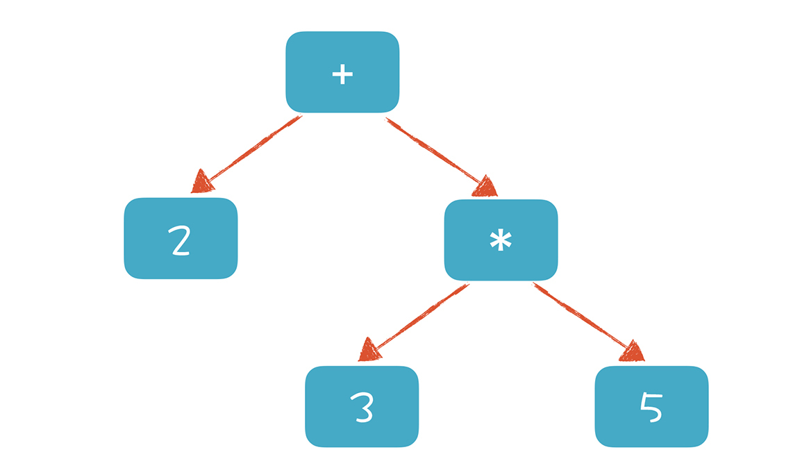 在这个网址里输入一个可以计算的表达式,例如“2+3*5”,你会得到一棵类似下图的AST。