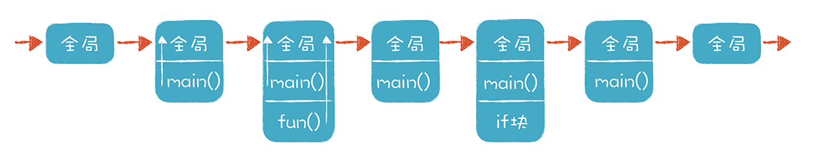 了解了什么是作用域之后,我们再理解一下跟它紧密相关的生存期。它是变量可以访问的时间段,也就是从分配内存给它,到收回它的内存之间的时间。