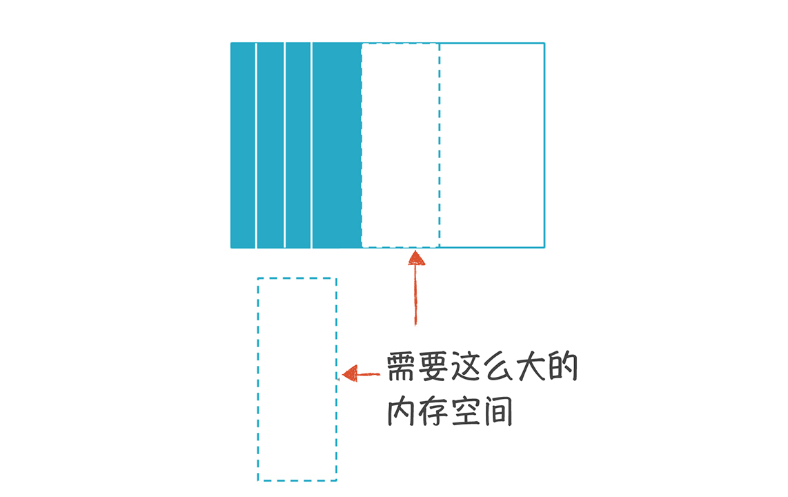 采用标记和清除算法,你会记住所有收集了的内存(通常是存在一个双向列表里),在下次申请内存的时候,可以从中寻找大小合适的内存块。不过,这会导致一个问题:随着我们多次申请和释放内存,内存会变得碎片化。所以,在申请内存的时候,要寻找合适的内存块,算法会有点儿复杂。而且就算你努力去寻找,当申请稍微大一点儿的内存时,也会失败。