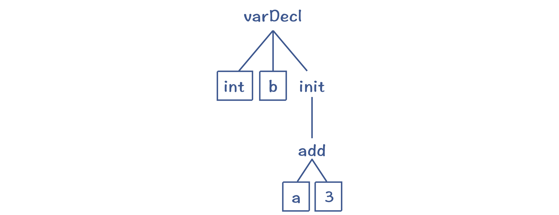 以“int b = a+3”为例,它的AST如下图所示。编译器会计算出b节点所需的类型和init节点的实际类型,比较它们是否一致(或者可以自动转换)。