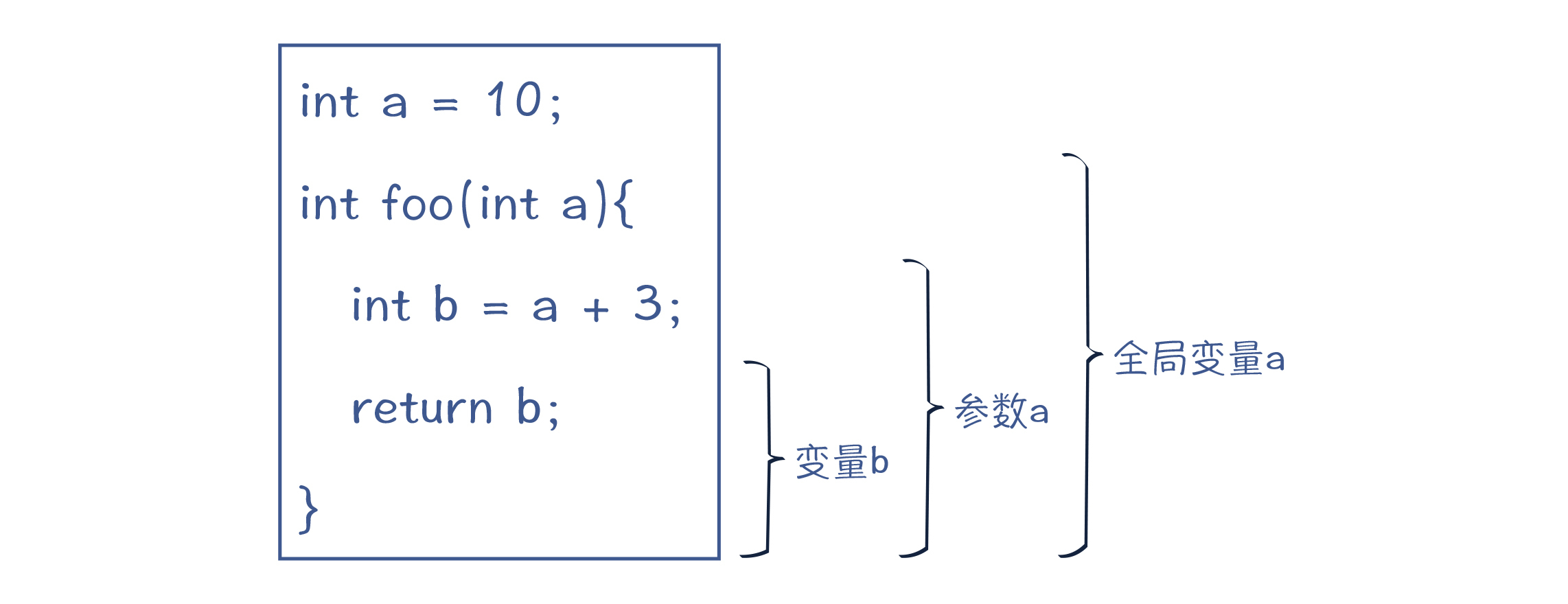 我们来看一个例子。在语法分析阶段,对于“int b = a + 3”这样一条语句,无论a是否提前声明过,在语法上都是正确的。而在实际的计算机语言中,如果引用某个变量,这个变量就必须是已经声明过的。同时,当前这行代码,要处于变量a的作用域中才行。