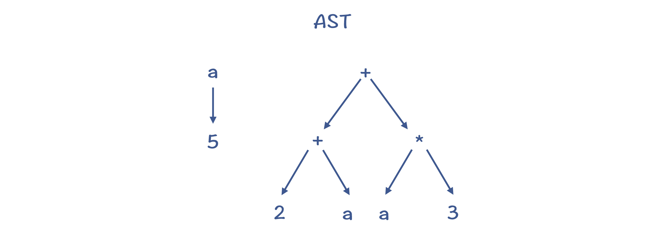 树结构的缺点是,可能有冗余的子树。比如,语句“a=5; b=(2+a)+a*3; ”形成的AST就有冗余。如果基于这个树结构生成代码,可能会做两次从内存中读取a的值的操作,并存到两个临时变量中。