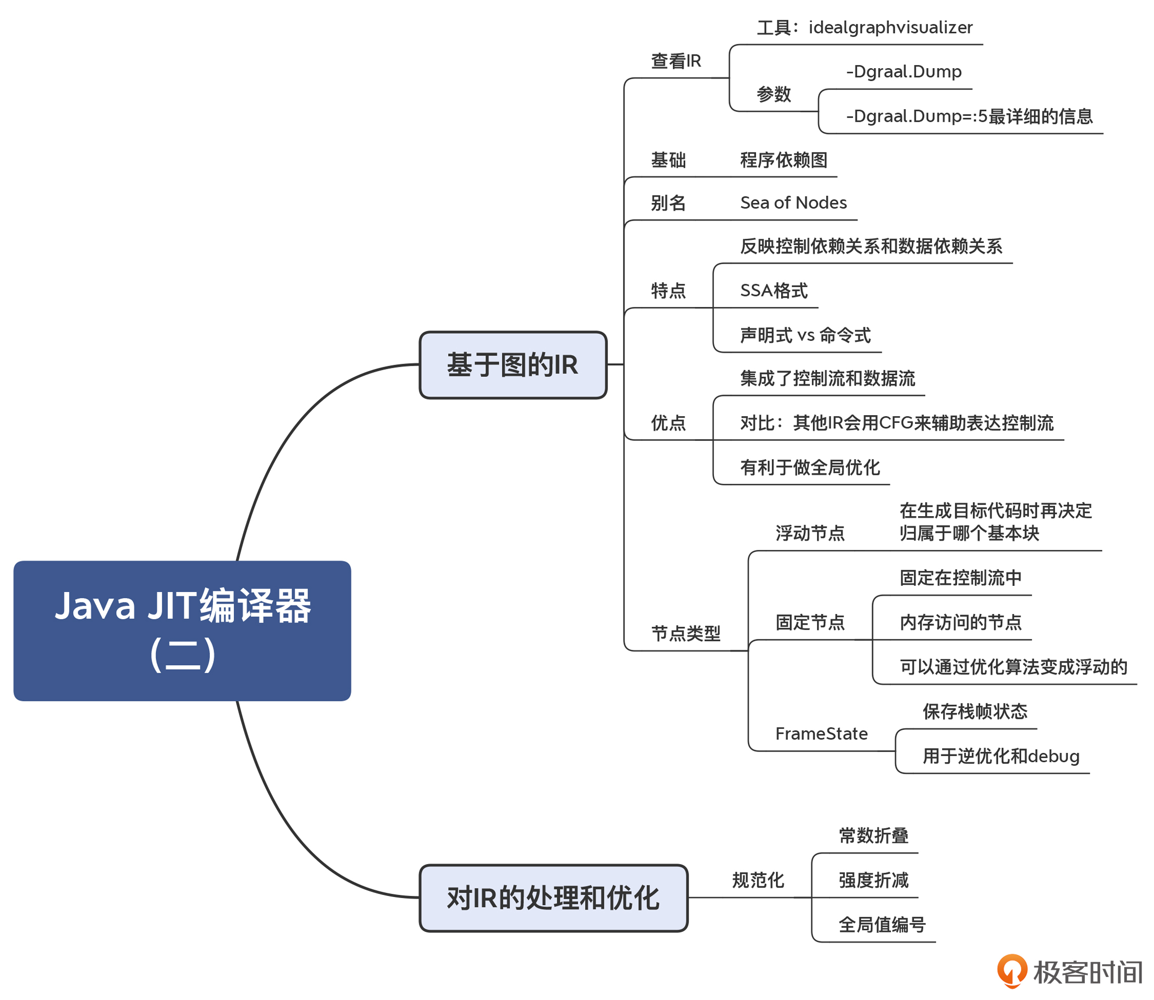 好,那在概要地理解了Graal IR的数据结构之后,接下来,我们就具体了解一下Graal IR,包括认识一下数据流与控制流的特点,了解两种不同的节点:浮动节点和固定节点,以及认识一种特殊的节点:FrameState。