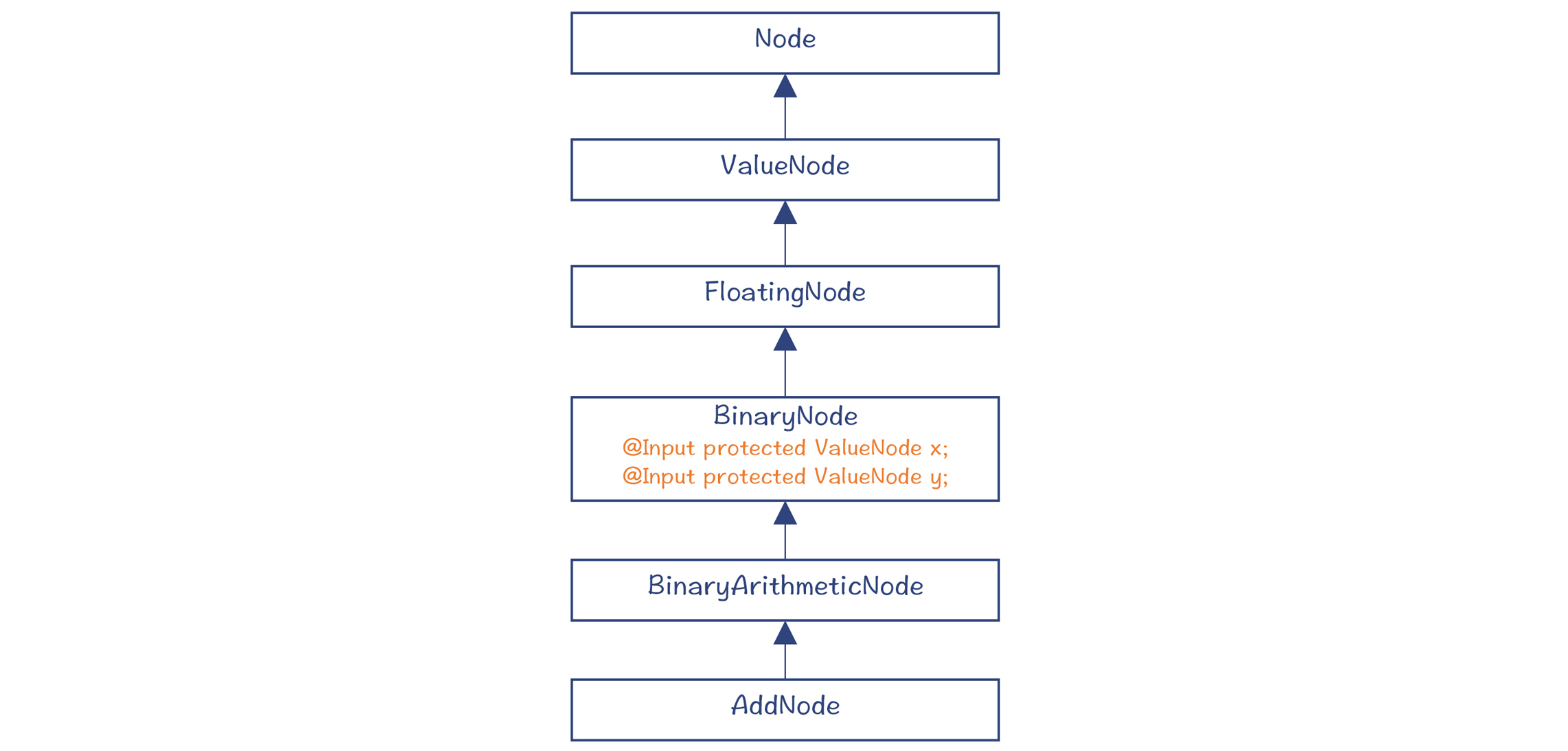 对于这些在执行时间上具有灵活性的节点,我们说它们是浮动的(Floating)。你在AddNode的继承层次中,可以看到一个父类:FloatingNode,这说明这个节点是浮动的。它可以在最后生成机器码(或LIR)的环节,再去确定到底归属哪个基本块。