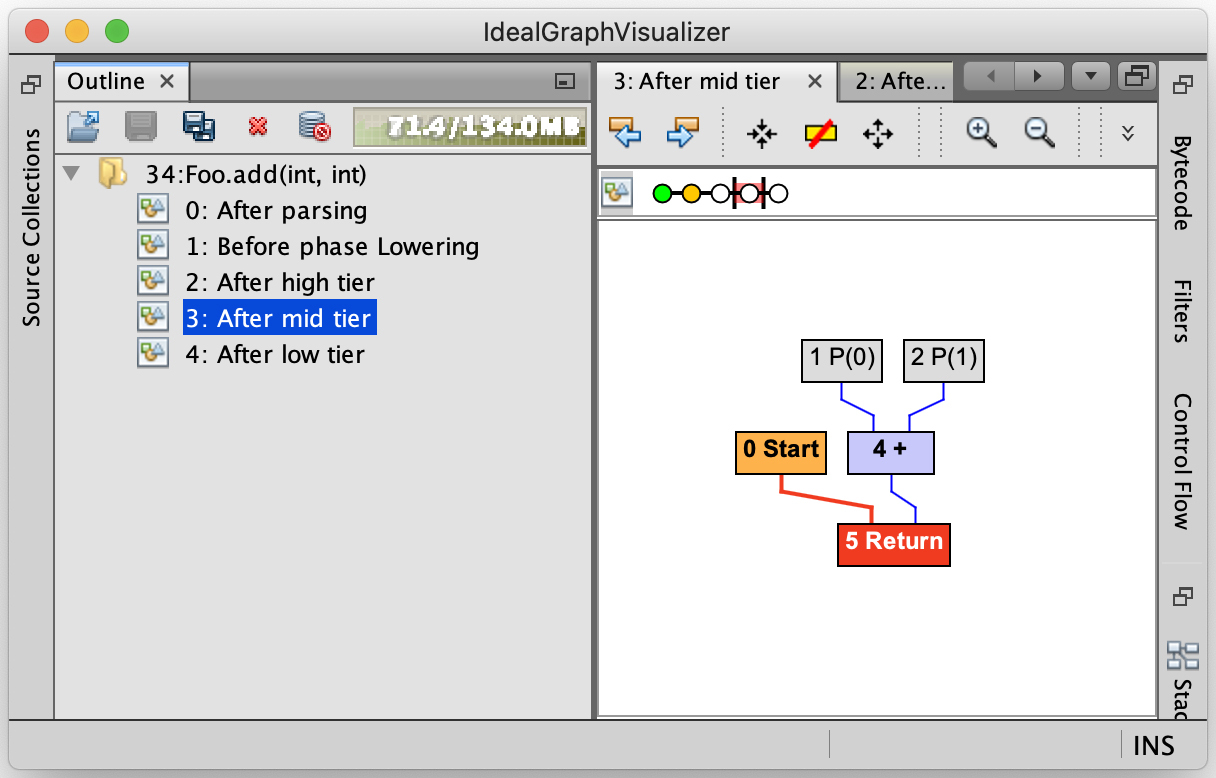 这里我展示了其中两个阶段的图,一个是刚解析完字节码之后(After parsing),一个是在处理完中间层之后(After mid tier)。