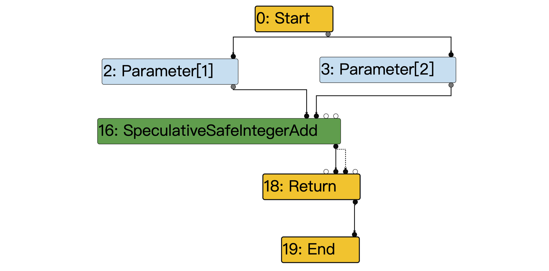 这个节点的功能是:当两个参数都是整数的时候,那就符合类型推断,做整数加法操作;如果不符合类型推断,那么就执行逆优化。