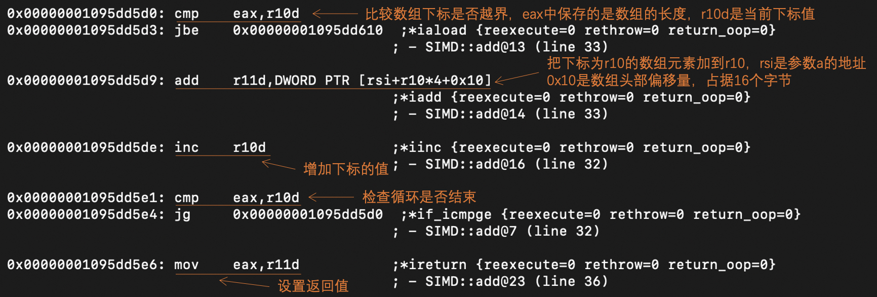 首先来看看Java,示例代码在SIMD.java中。其中的add方法,是把一个数组的所有值汇总。