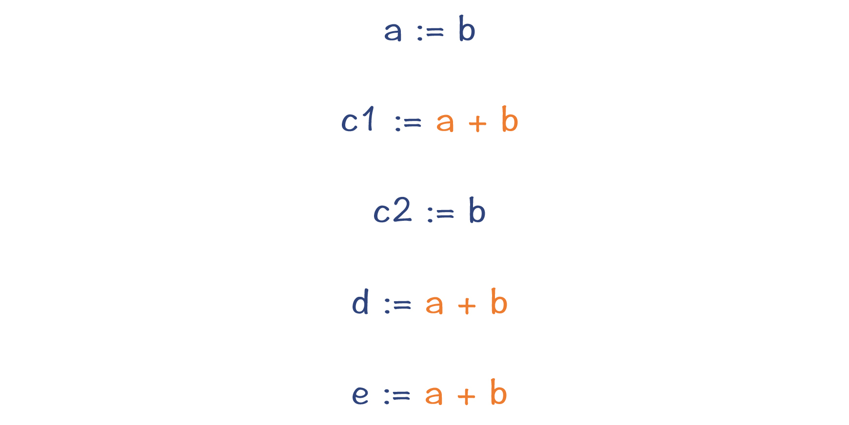 在后面,当替换公共子表达式的时候,我们可以把“e:=a+b”替换成“e:=d”,这样就可以少做一次计算,实现了优化的目标。