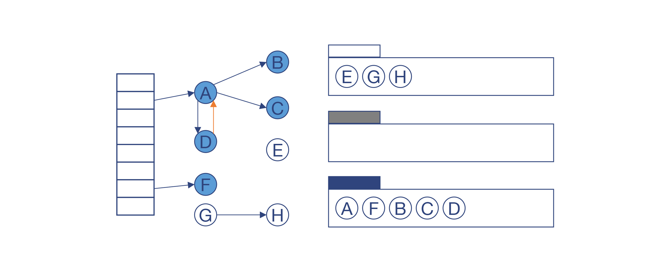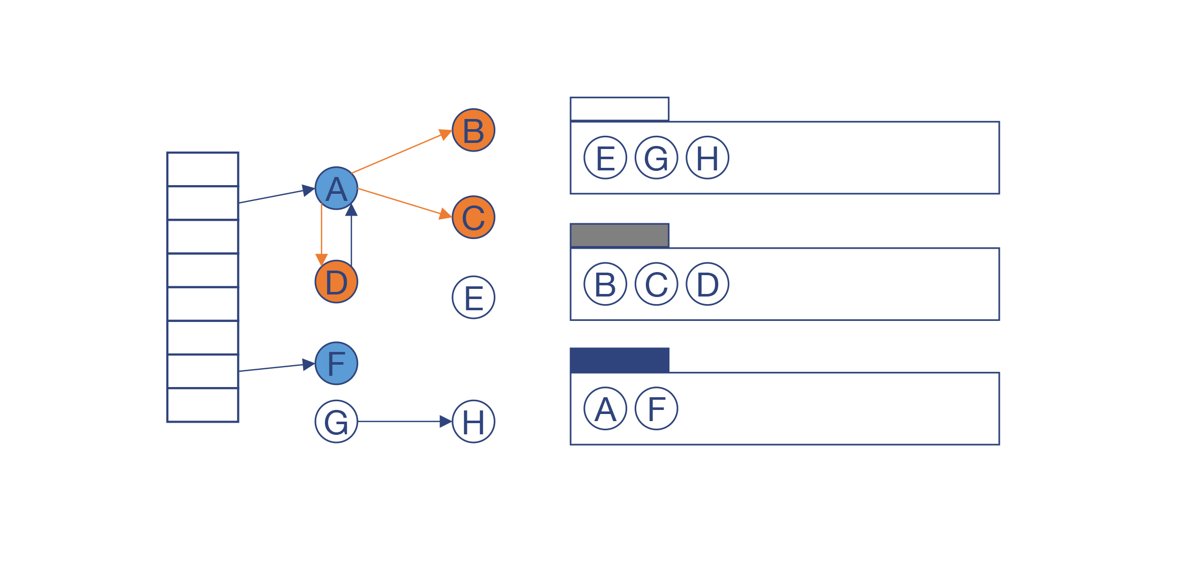 如果这个对象的所有子节点都被访问过之后,就把它标记为黑色。在例子中,A和F已经被标记为黑色,而B、C、D被标记为灰色。