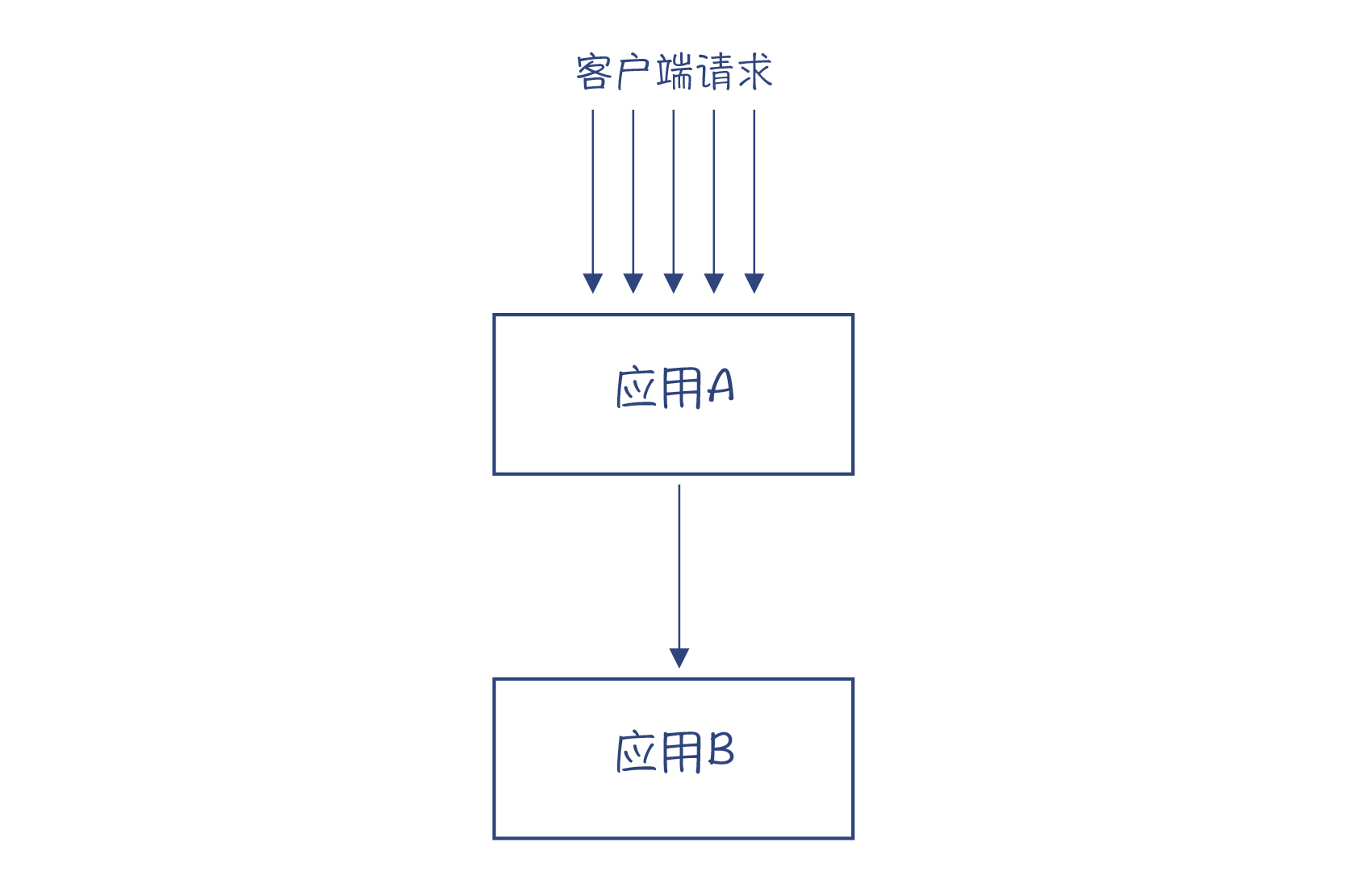 在下面的示例中,应用A从客户端接收大量的并发请求,而应用A需要访问应用B的服务接口,从中获得一些信息,然后返回给客户端。