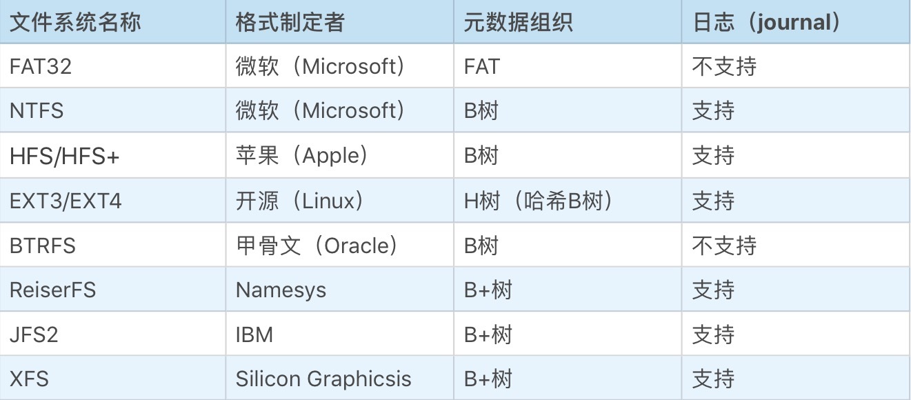 对于随机读写型的存储(如硬盘),常见的文件系统有如下这些。