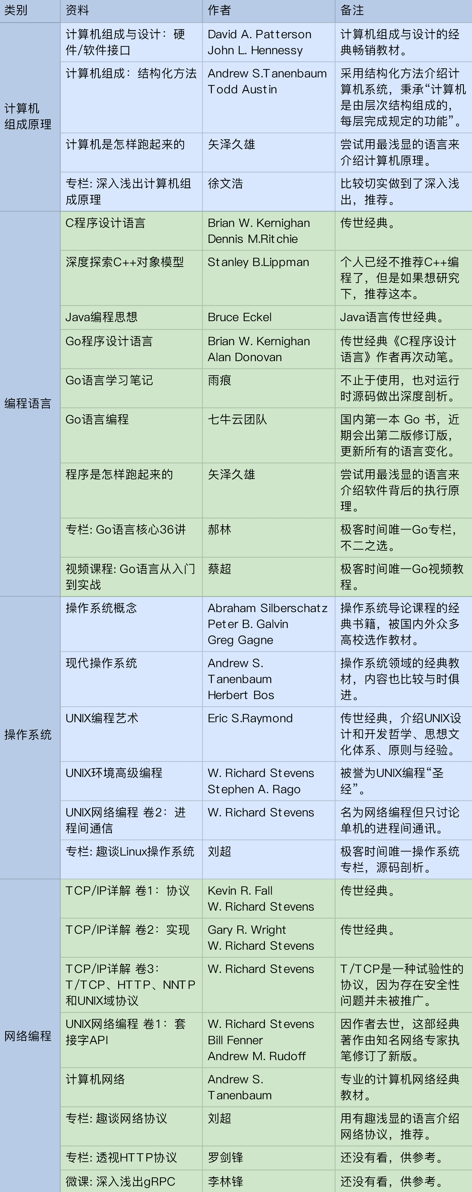 如果你有什么推荐的优秀参考资料,也欢迎在留言区分享,我补充到这个表格中来,我们一起来完善它。