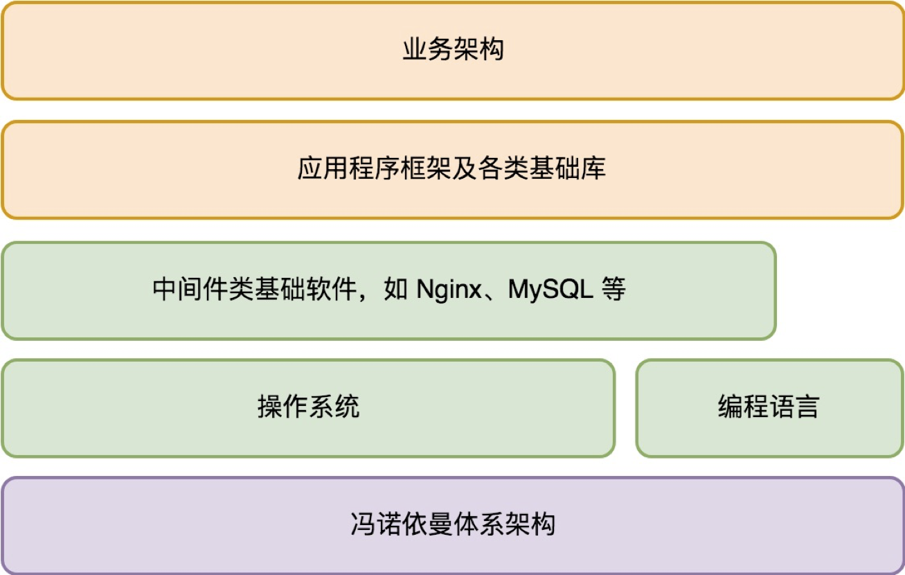相比桌面程序而言,服务端程序依赖的基础软件不只是操作系统和编程语言,还多了两类: