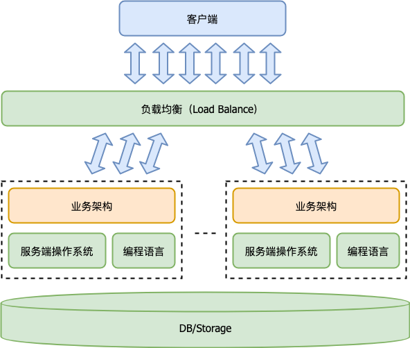 有了负载均衡,实现业务架构的心智负担小了很多。遇到任何异常,我们返回 5XX 错误的请求结果,这时负载均衡发现请求出错了,就会把该请求发给其他的业务服务器来重试。这就解决了业务架构的单点问题。