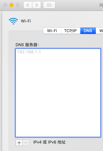 一般操作系统都允许用户自行设置 DNS 服务器,它可以是多个 DNS 递归或转发服务器。比如在 MAC 下的配置界面如下图。