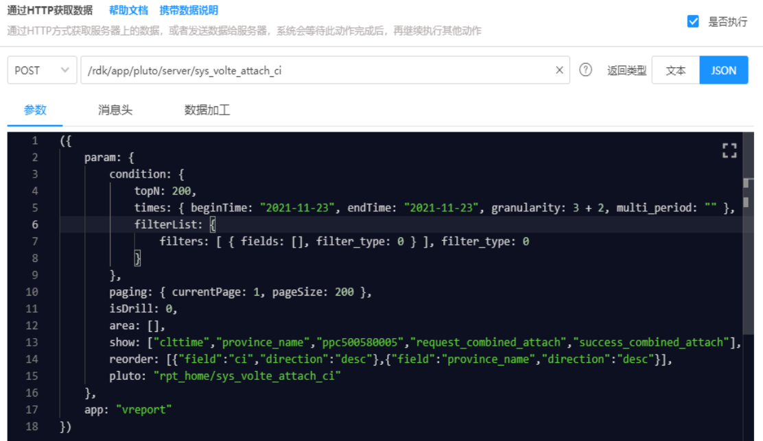下面,我们再看一个实例,对比下通用和个性化获取数据的差异。对于同一笔数据,如果它在低代码平台中只能采用通用化方式来获取,我们可以看到参数部分非常复杂,要正确填写这样的参数是不容易的: