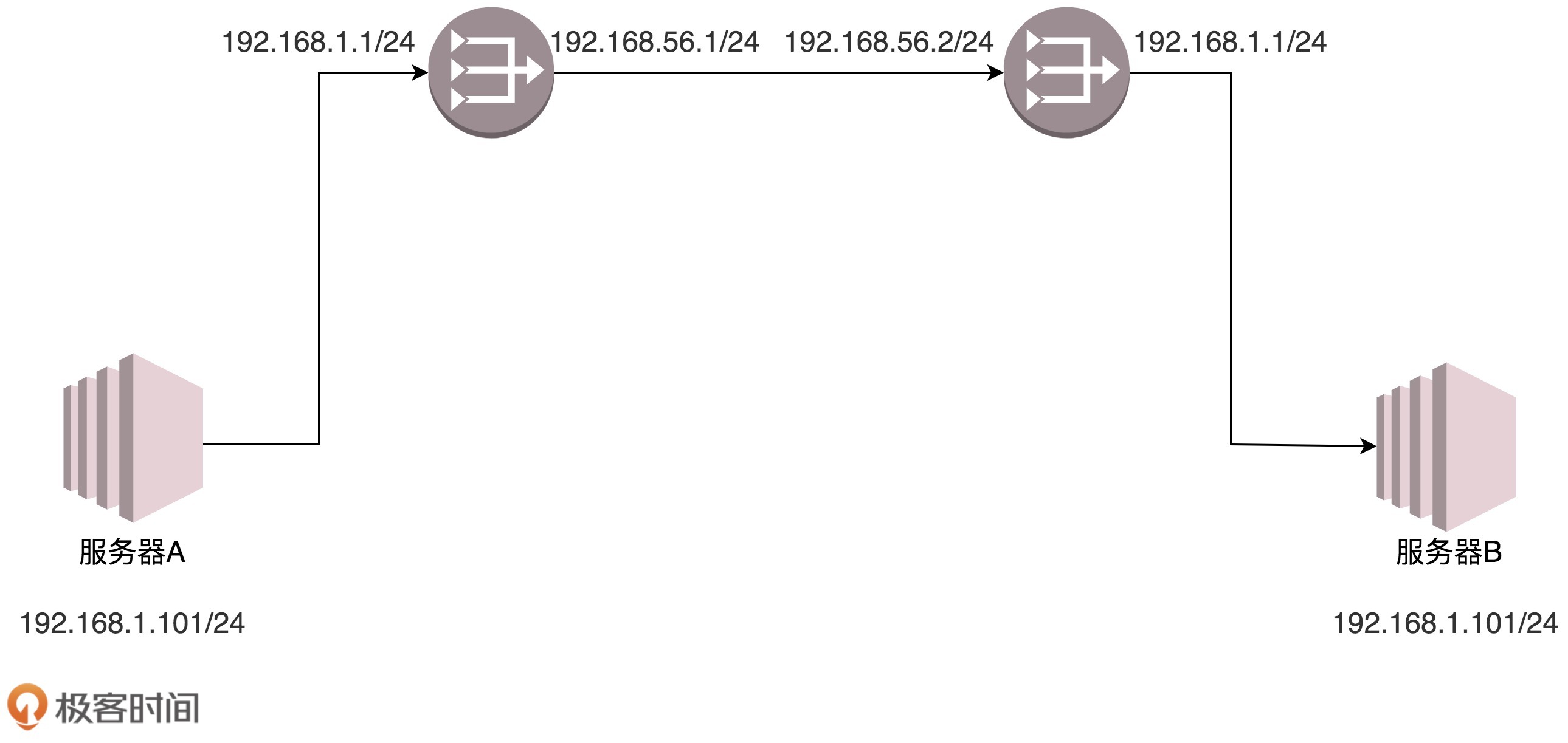 路由器B是一个NAT网关,它上面配置了,要访问国际身份192.168.56.2对应国内身份192.168.1.101,于是改为访问192.168.1.101。