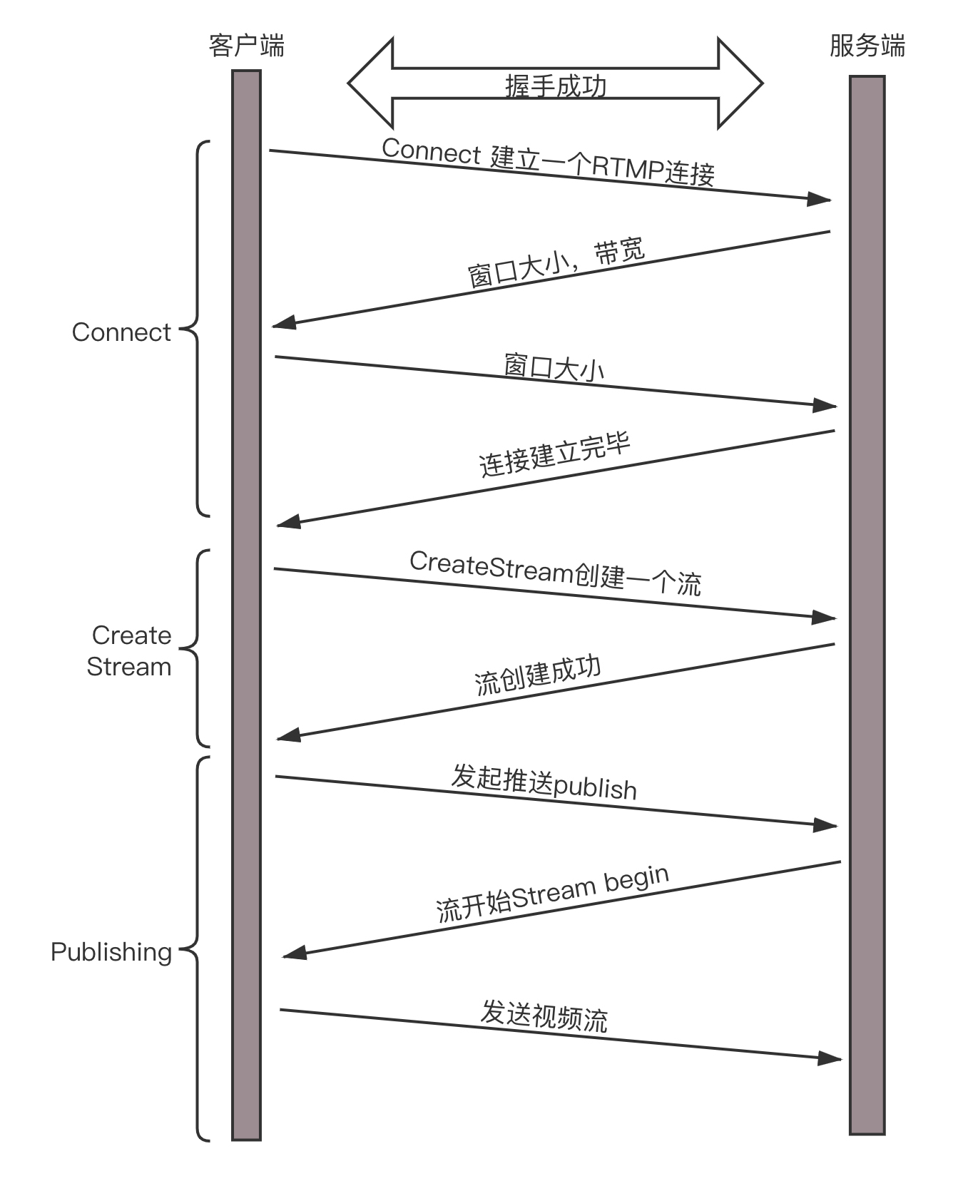 接下来,我们再来看观众的客户端通过RTMP拉流的过程。