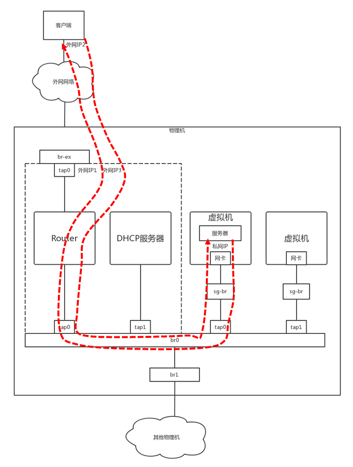 我们在前面的章节讲过,如果要在虚拟机里面提供服务,提供给外网的客户端访问,客户端需要访问外网IP3,会在外网网口NAT称为虚拟机私网IP。这个NAT规则要在这个namespace里面配置。