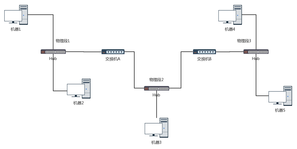 在这里,我用Hub将不同的机器连接在一起,形成一个物理段,而非LAN。