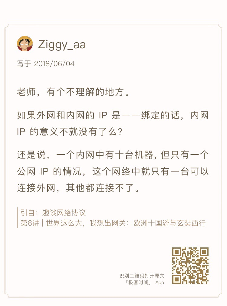 当在你家里要访问 163 网站的时候,你的包需要 NAT 成为公网 IP,返回的包又要 NAT 成你的私有 IP,返回包怎么知道这是你的请求呢?它怎么能这么智能地 NAT 成了你的 IP 而非别人的 IP 呢?